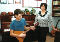 При этом индивидуальные практические занятия по обучению игре на русских народных инструментах ведутся во взаимосвязи с другими предметами, предусмотренными учебным планом: сольфеджио, музыкальная литература, слушание музыки. Начиная со второго года обучения вводится один из основных предметов на отделении РНИ — оркестр (руководитель Юровский Ю.В.), где ребята учатся коллективному музицированию.