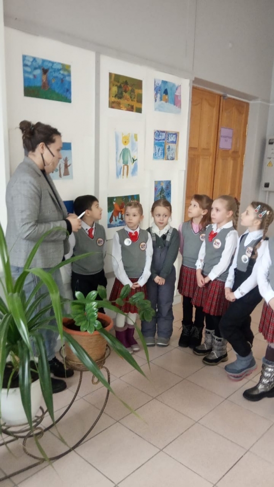 Открыла выставку заведующая отделением общего эстетического образования Сорокина Л.С., Преподаватель изобразительного искусства Черникова Е.Н. проводит экскурсии для ребят.