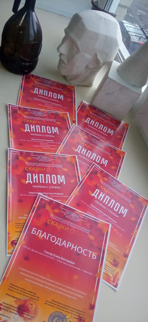 4 ноября в День народного единства пришли долгожданные результаты с Международного многожанрового онлайн конкурса " Сказки осени " (г. Санкт-Петербург). Ученики нашей школы показали отличный результат, несмотря на то, что участников было очень много, причём из разных уголков земли! Рисунки наших учеников оценили по достоинству, присудив лауреата 1 и 2 степени! Творчество и талант детей объединил несколько стран, позволил глазами ребёнка увидеть красоту осенних пейзажей. В каждом городе, селе или посёлке своя осень, со своими неповторимыми красками. Ребята показали своё мастерство во всех красках.