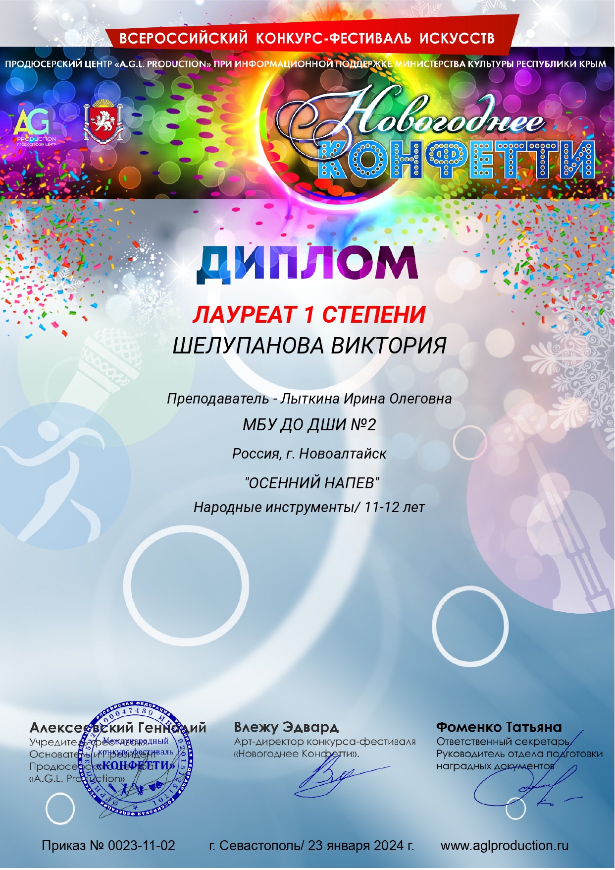 В январе 2024 г. прошел Всероссийский конкурс-фестиваль в г. Севастополе при поддержке Министерства культуры республики Крым.