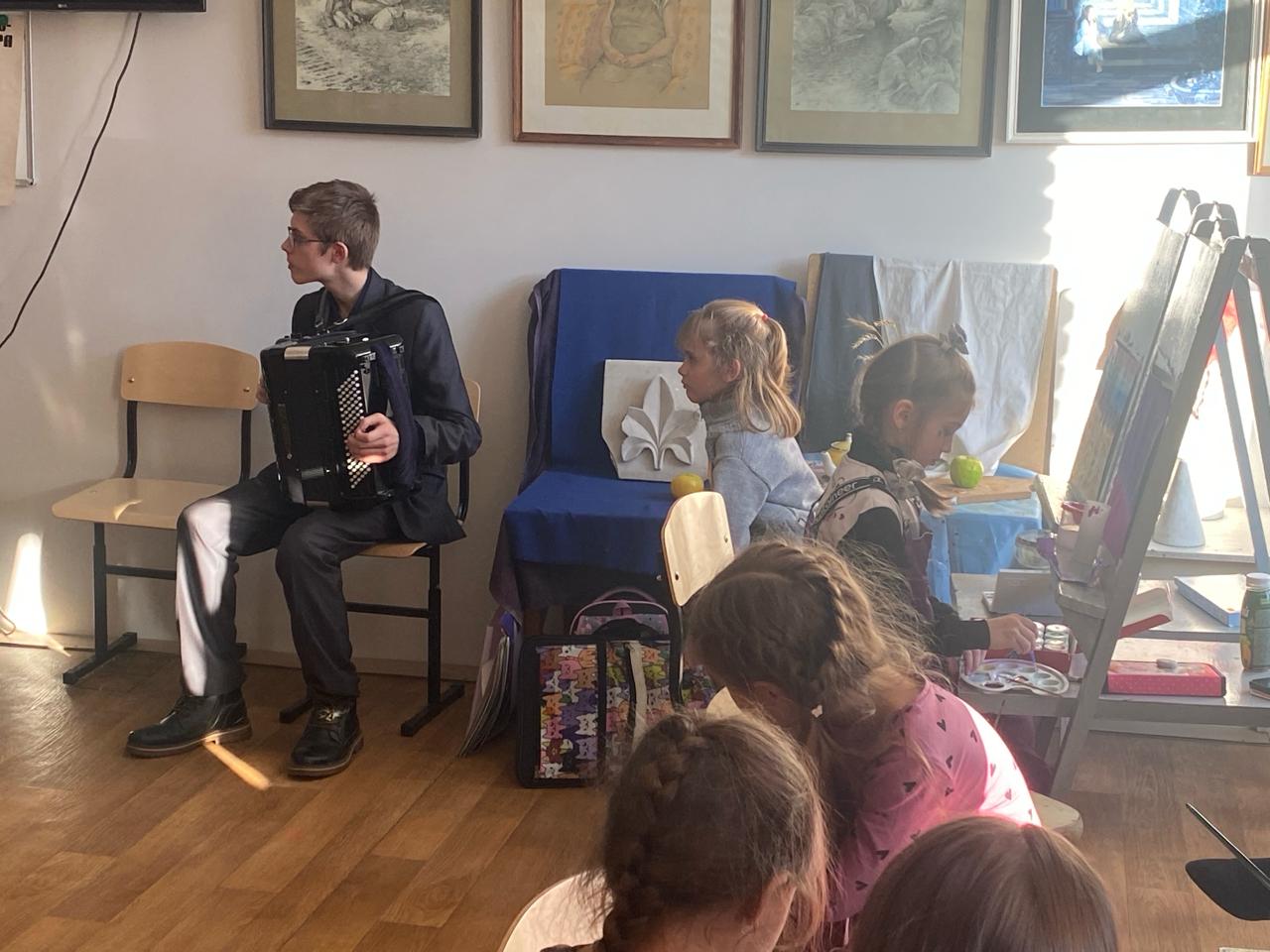 25 января на отделении русских народных инструментов и художественном отделении прошел интегрированный урок по теме: «Времена года в музыке. Времена года в живописи».