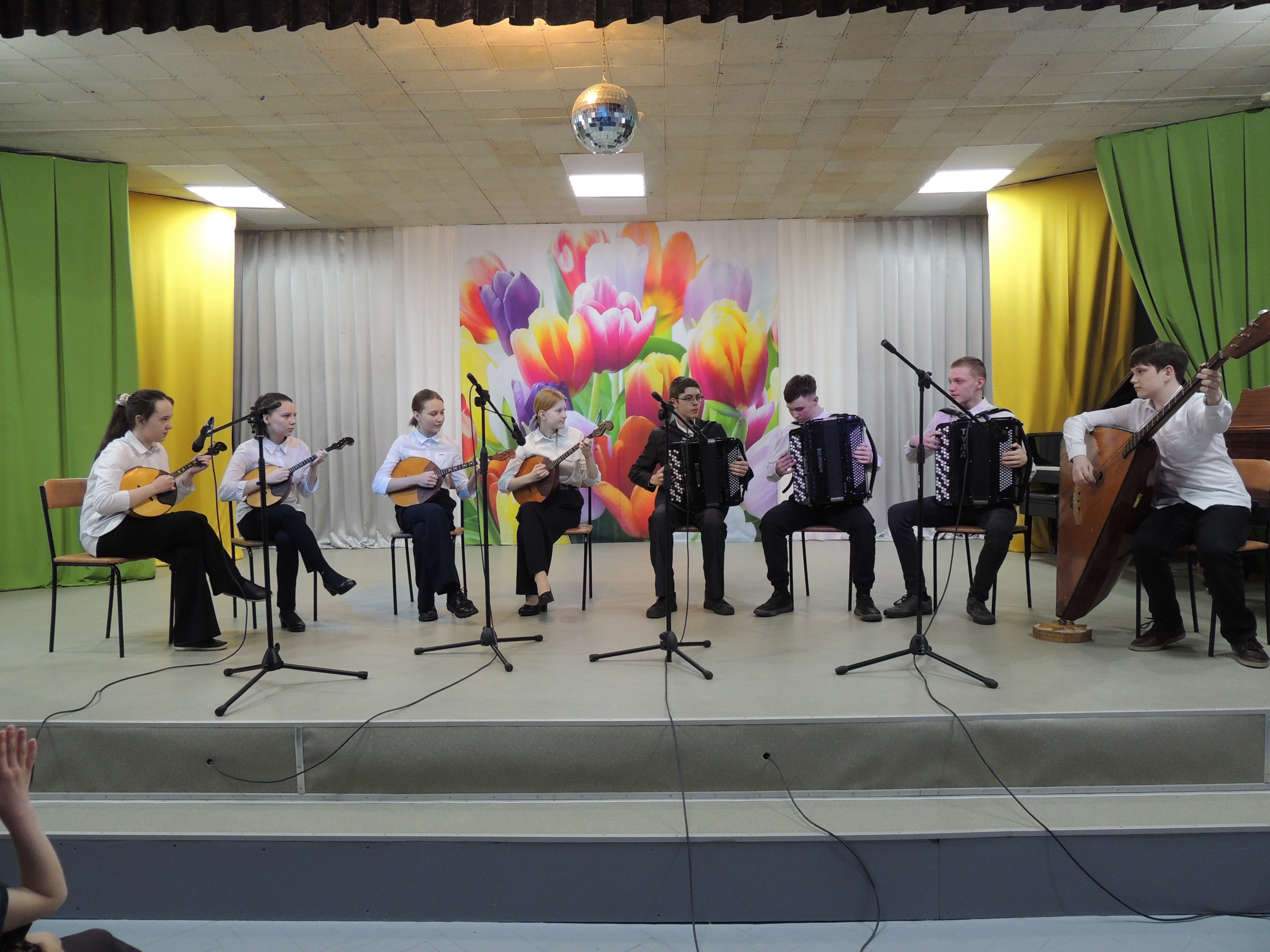 Украшением праздничного концерта стали выступления музыкантов народного отделения: Алексей Крысанов, Вера Хайдарова и Арина Мирнова, Алексей Куликов, Сергей Бодорин, Михаил Саттаров и АРНИ «Весёлые ребята» - подарили зрителям свои творческие номера.