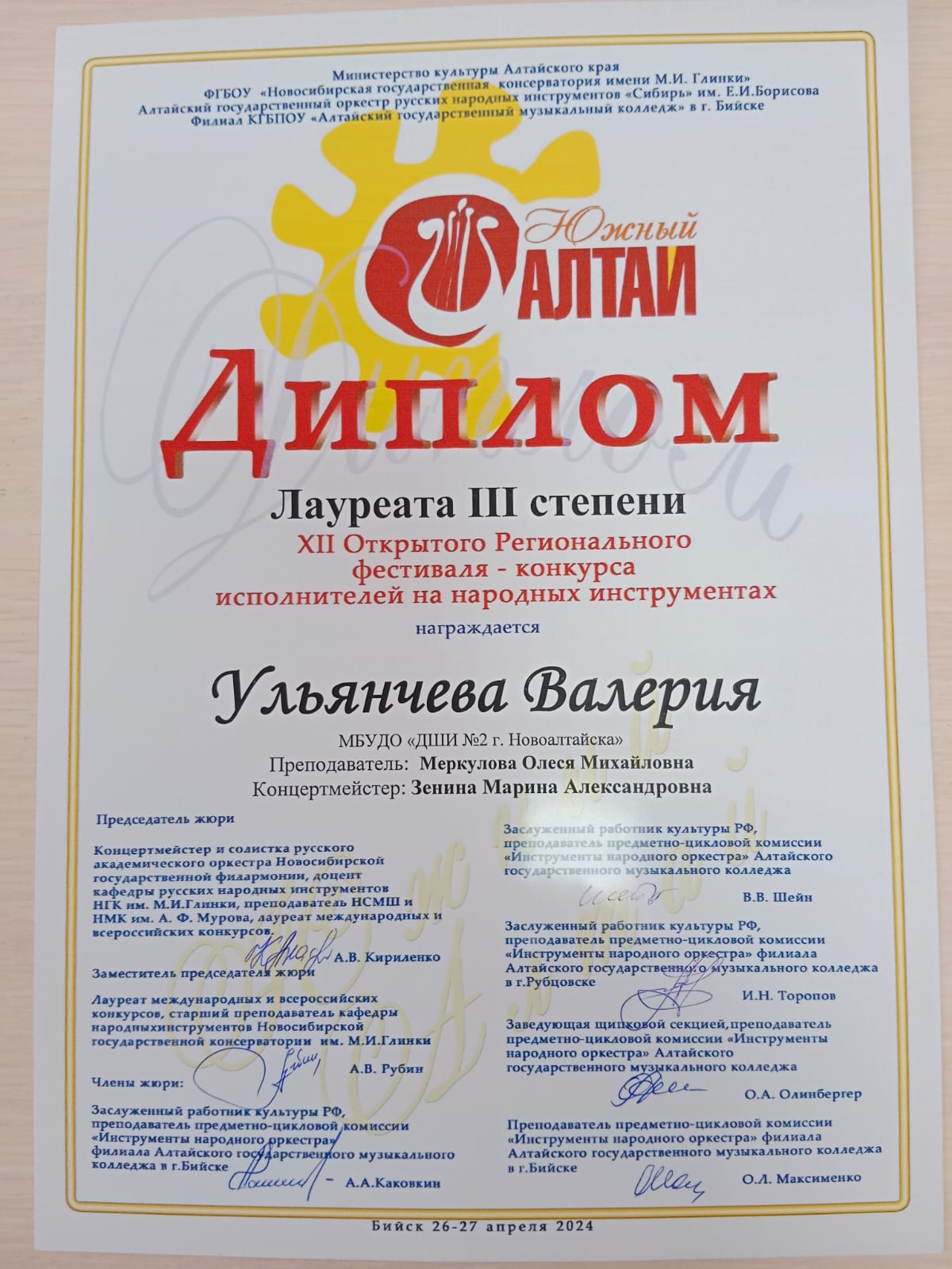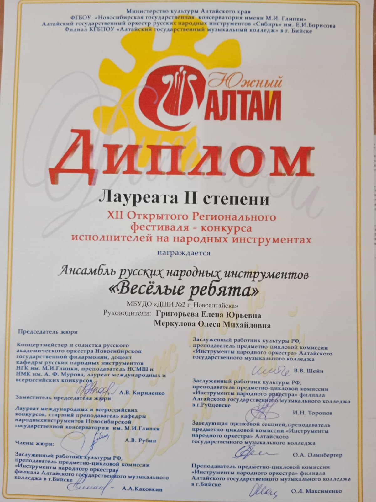 26-27 апреля в г. Бийске состоялся XII Открытый Региональный фестиваль-конкурс исполнителей на народных инструментах. Конкурс проходил среди исполнителей на баяне, аккордеон, балалайке, домре в двух номинациях: сольное и ансамблевое исполнение.