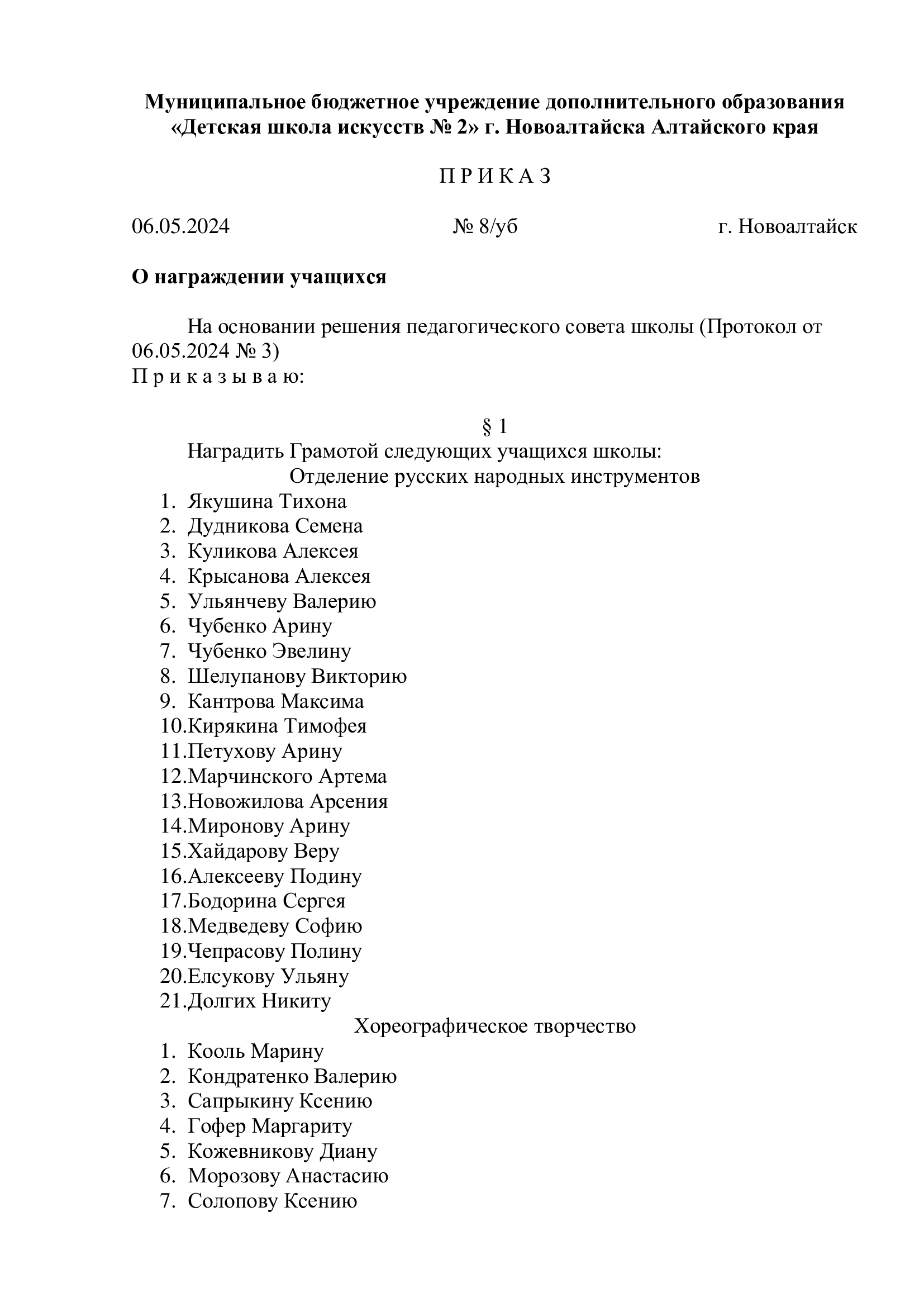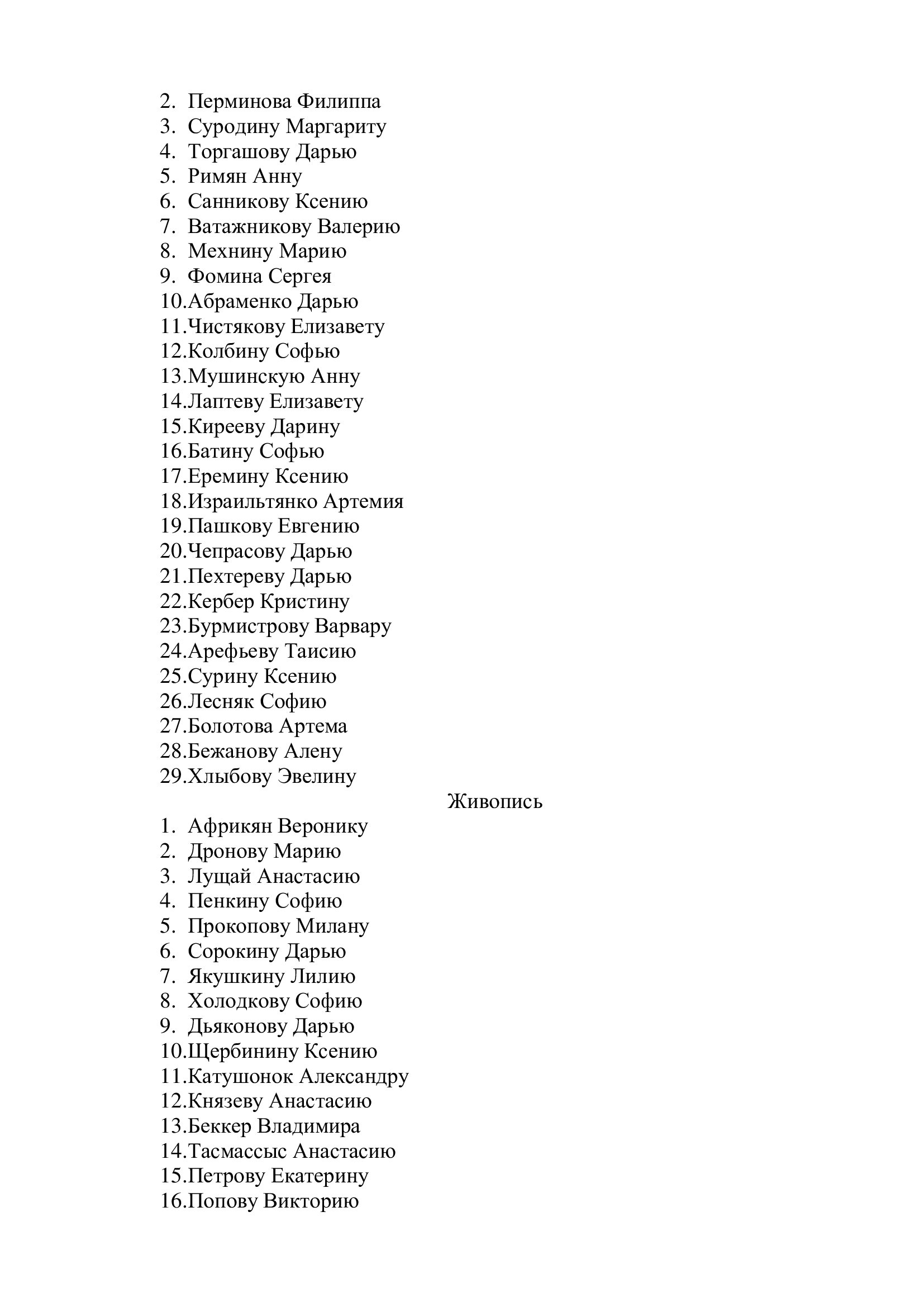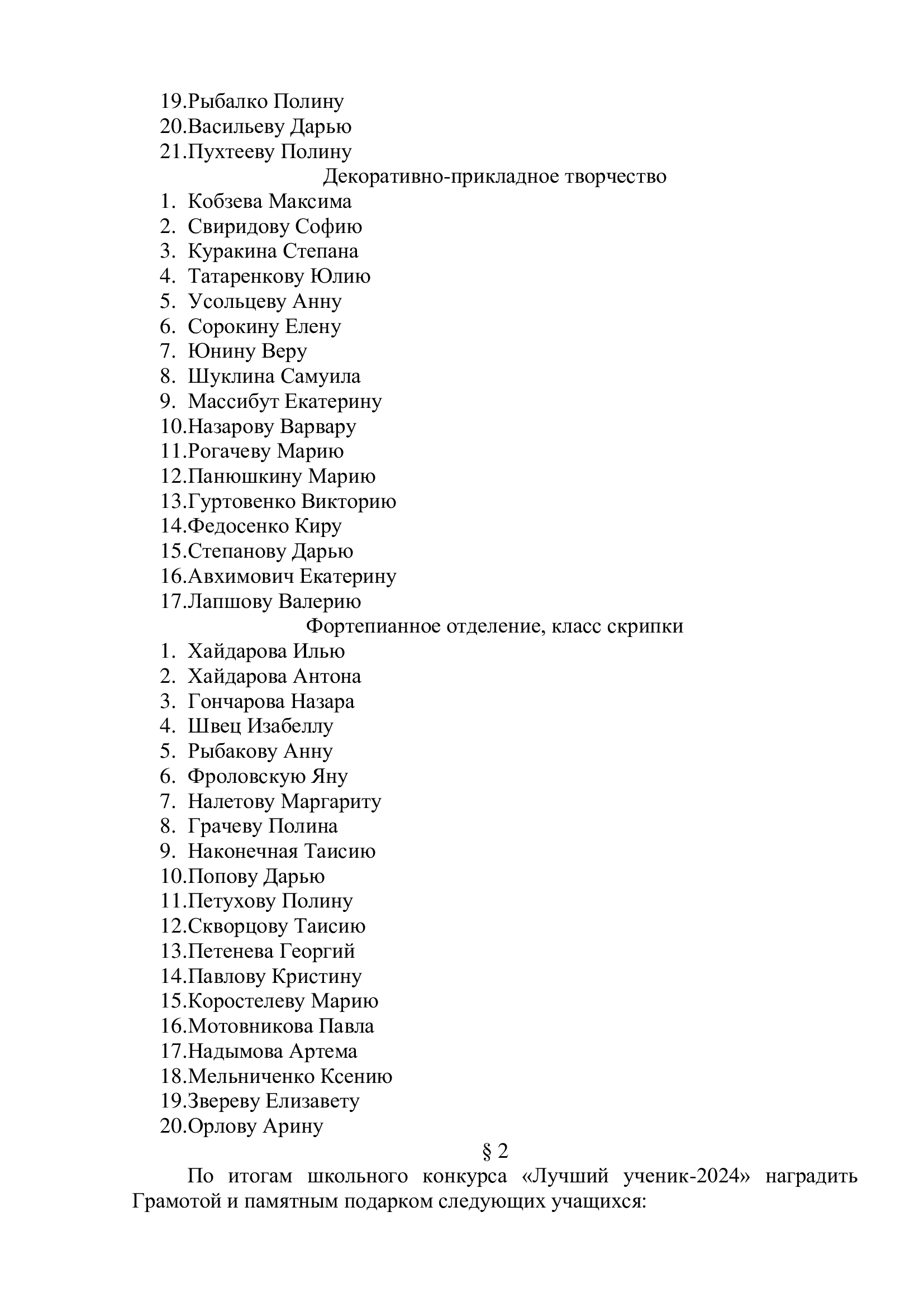 Список учащихся для награждения на Слёте отличников и ударников, который состоится в концертном зале ДШИ № 2 в 14.00 час.
