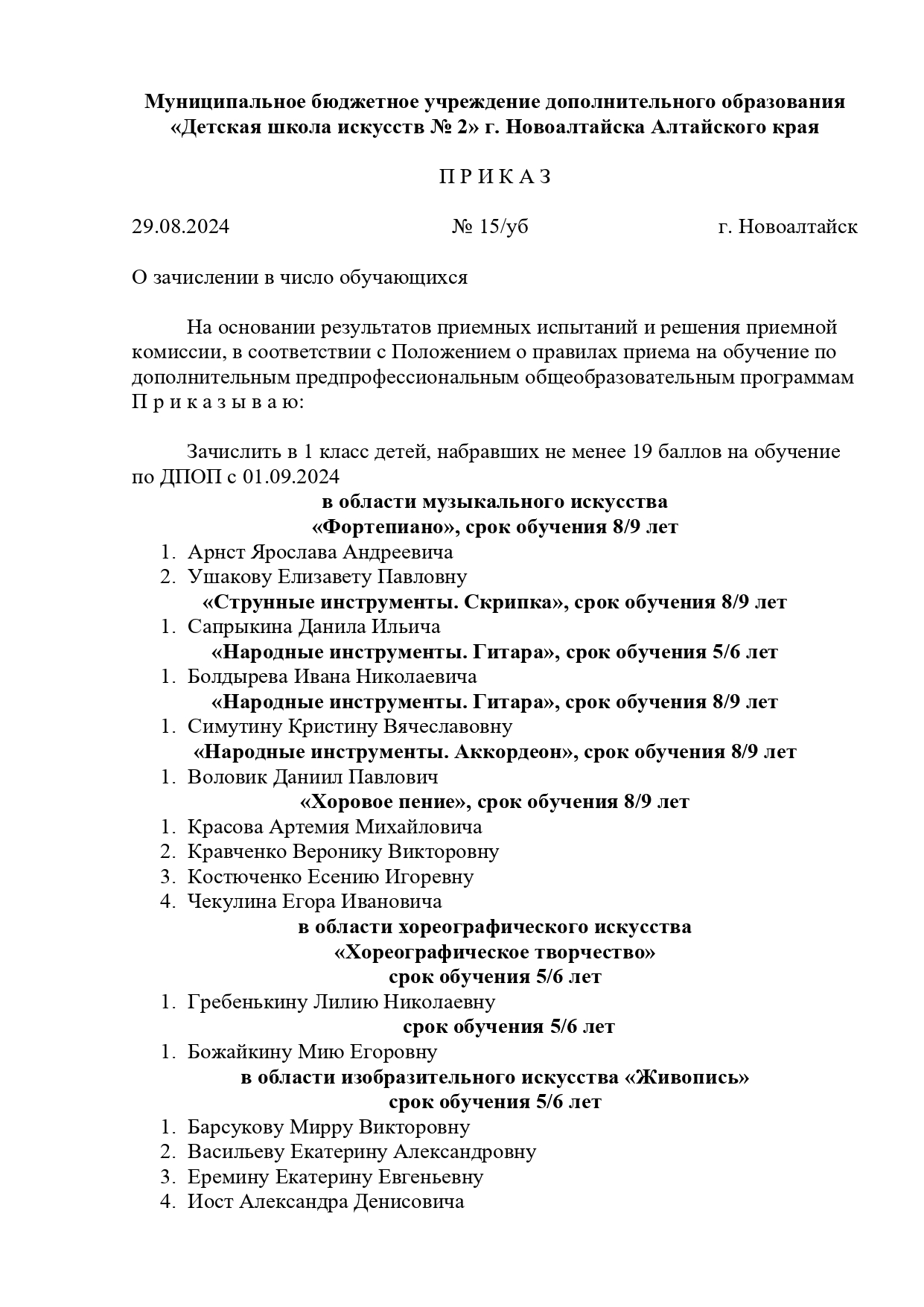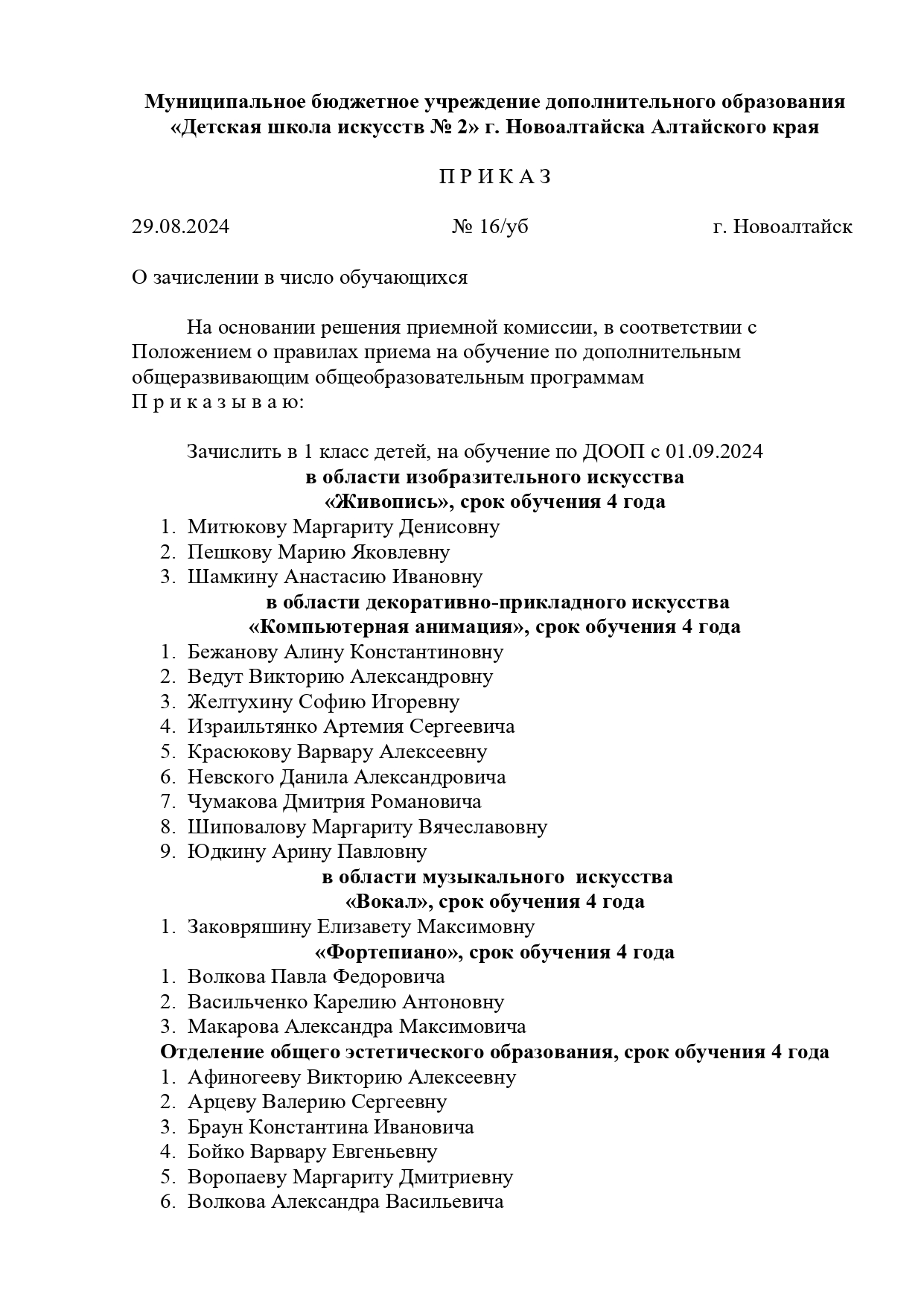 Приказы о зачислении в число обучающихся в 1 класс на 2024-2025 учебный год