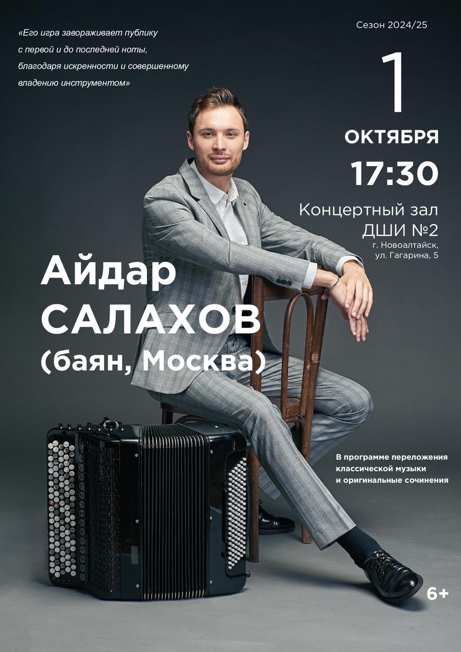 Айдар Салахов - основатель трио Elegato, солист Московской государственной академической филармонии; выступал с сольными концертами в крупнейших концертных залах России, Германии, Китая, Японии, Испании, Финляндии и др. стран.