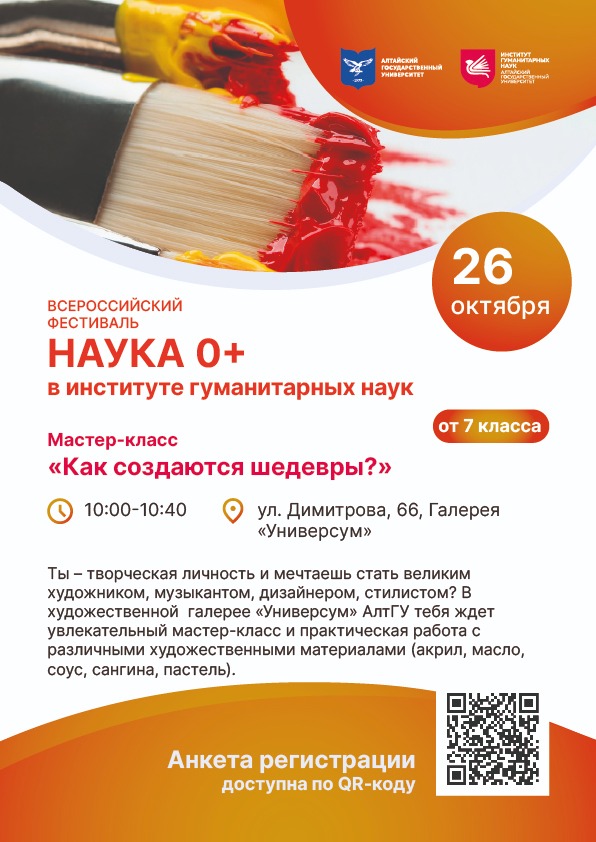 В нашей школе особое внимание уделяется профессиональной ориентации учащихся. Как применить в дальнейшей жизни знания, полученные в нашей школе, куда пойти учиться, какую профессию выбрать - мы стараемся не оставлять наших ребят один на один с этими сложными вопросами. Так, 26 октября в рамках работы по профориентации учащиеся предвыпускного класса художественного отделения посетили мастер-класс в Алтайском государственном университете.
