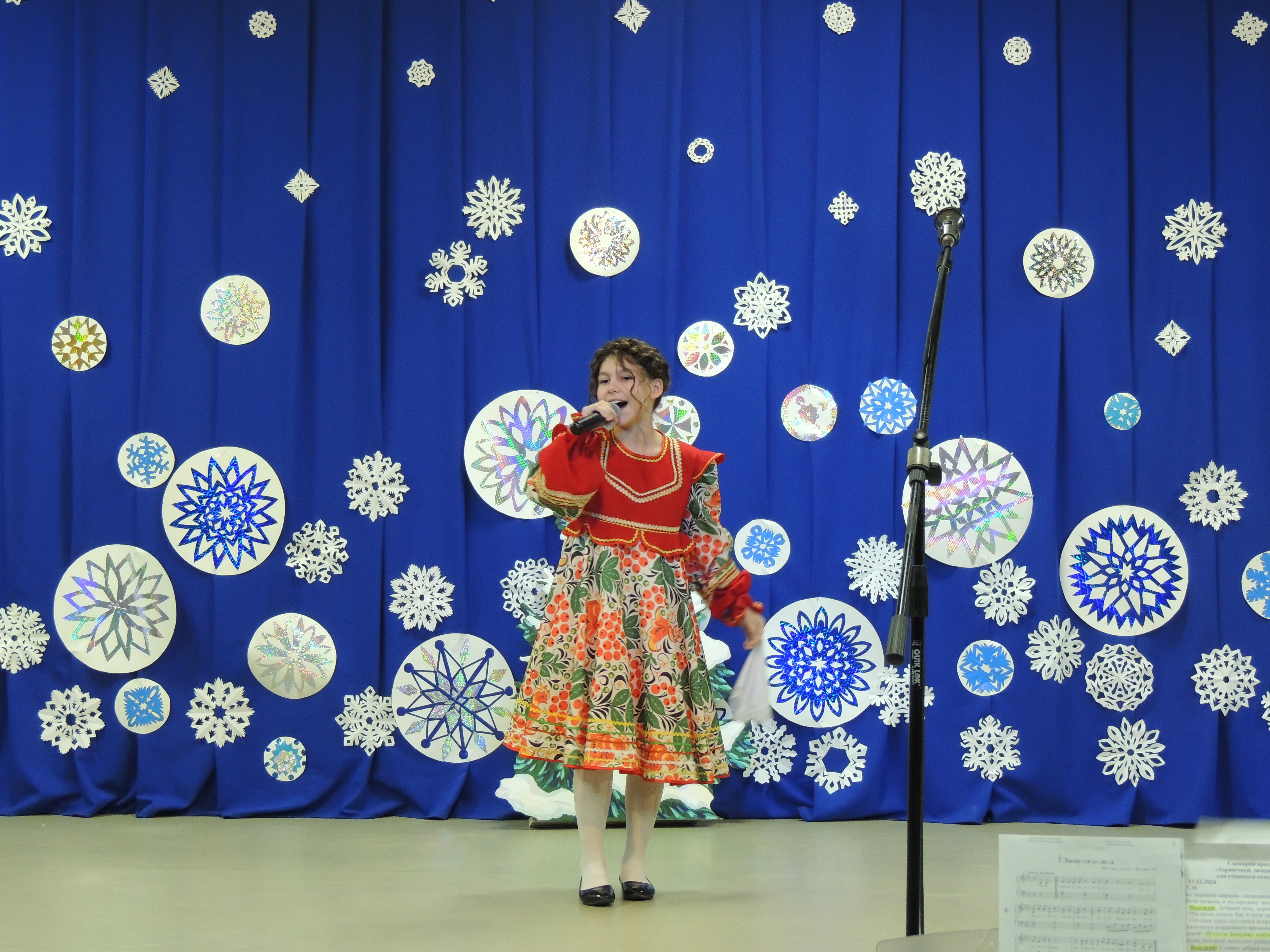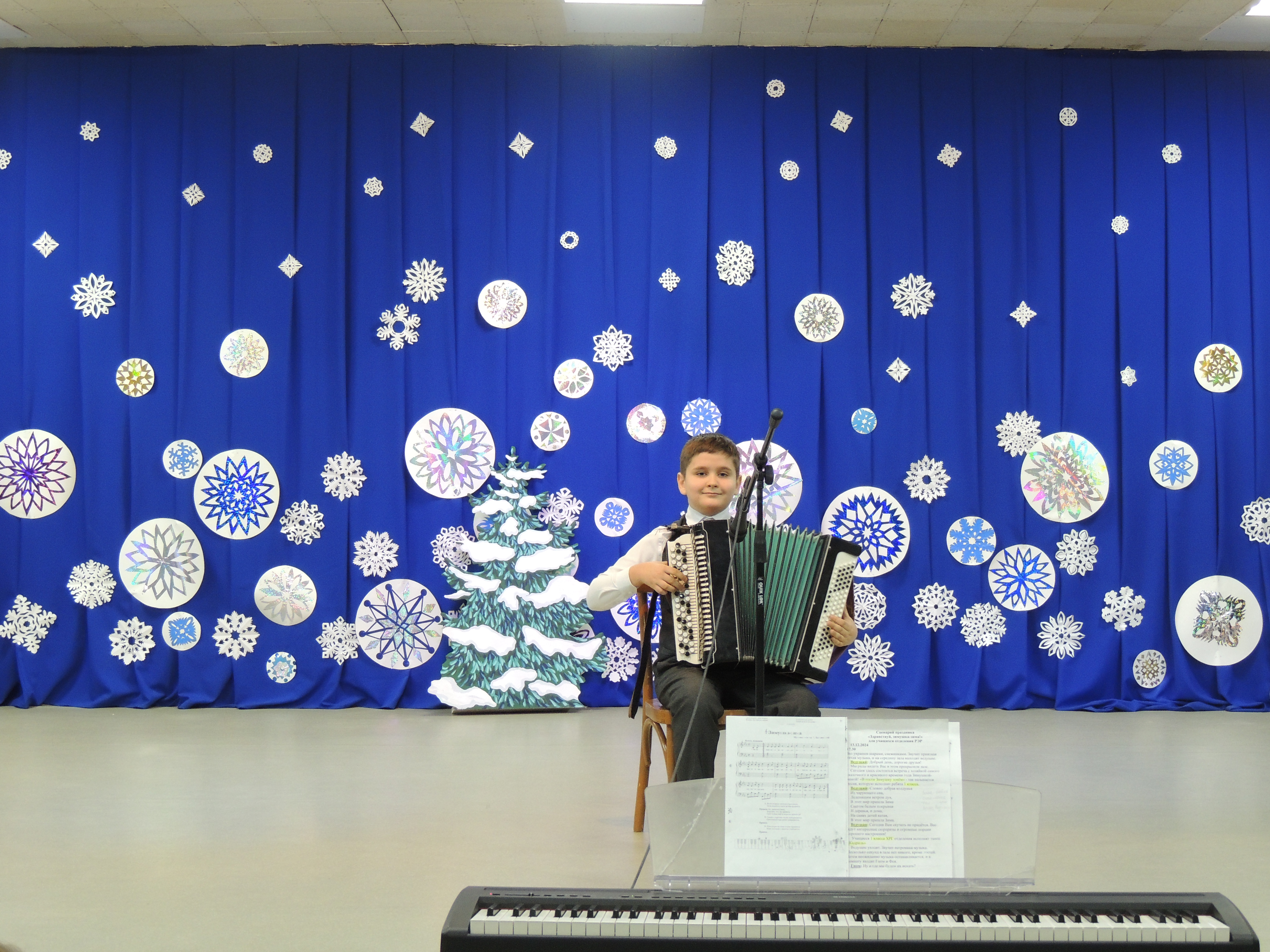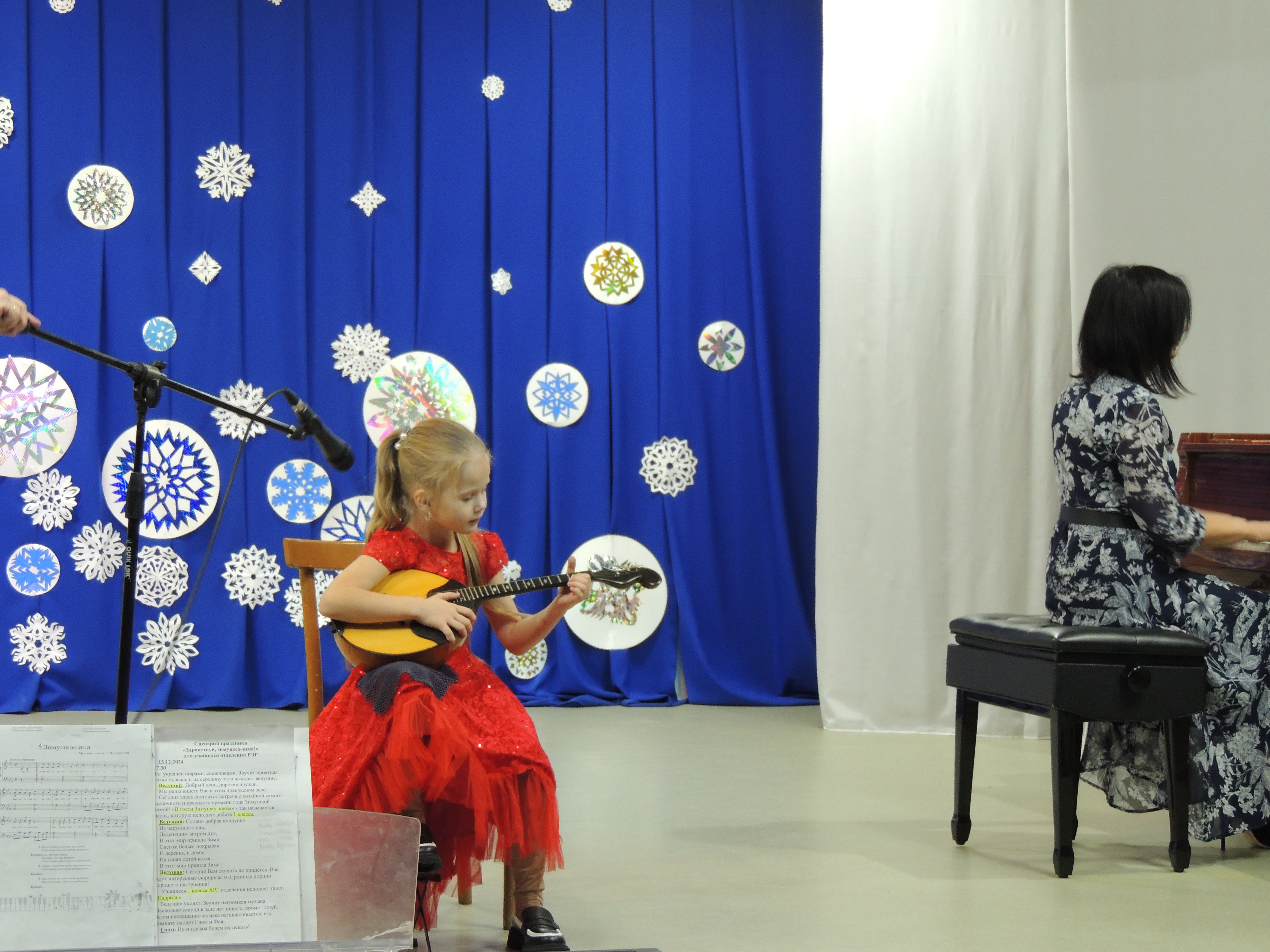Нарядно оформленная сцена, уютная доброжелательная атмосфера в концертном зале, празднично одетые дошколята – все это создавало радостное настроение, предчувствия и ожидание сказочного волшебства от встречи с хозяйкой самого красивого времени года – Зимушкой-Зимой. Ребятишки задорно с воодушевлением исполняли песни и танцы о зиме (рук. Бакулина И.В., Легченко М.Г.). так же в этом мероприятии приняли участие учащиеся 1 класса хореографический ансамбль «Рассвет» (рук. Снеженко И.Ю.) исполнив зажигательную «Кадриль». Популярную «Ягодку-малинку» на домре сыграла Ксения Ульянчева. Пьеса Д. Кабалевского «Клоуны» прозвучала в исполнении Ульяны Маляновой (фортепиано). Учащийся 2 класса Андрей Кронвальд (баян) исполнил произведение Е. Дербенко «Зимнее настроение». Не остались в стороне и юные вокалисты – учащиеся 2 класса Соня Пушненкова и Гриша Райко. Бурные аплодисменты зрителей вызвали прозвучавшие в их исполнении песни «Царевна-несмеяна» и «Я – не красавчик».