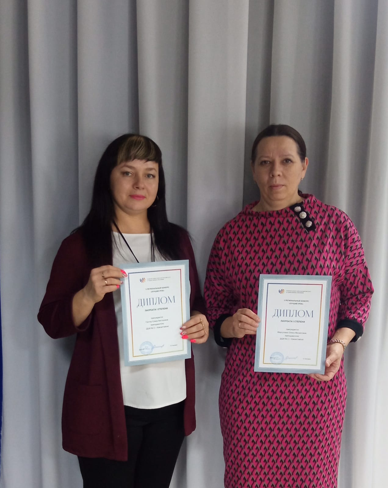 Преподаватели нашей школы, которые продемонстрировали наилучшие результаты по критериям оценки уроков, были удостоены высоких наград. Дипломом Лауреата 1 степени - Меркулова Олеся Михайловна ( преподаватель отделения русских народных инструментов). Тема : " Подготовка ученика к публичному выступлению". С учащимся 7 класса Алексеевой Полиной (домра). И Лауреат 1 степени - преподаватель художественного отделения Гюнтер Елена Викторовна. Тема : " Пластика человека" по предмету " Основы изобразительной грамоты и рисования" 3 класс. Преподаватели пришедшие в школу по призванию, они полны творческой энергии с большим старанием совершенствуют своё мастерство и преуспевают в любимом деле.
