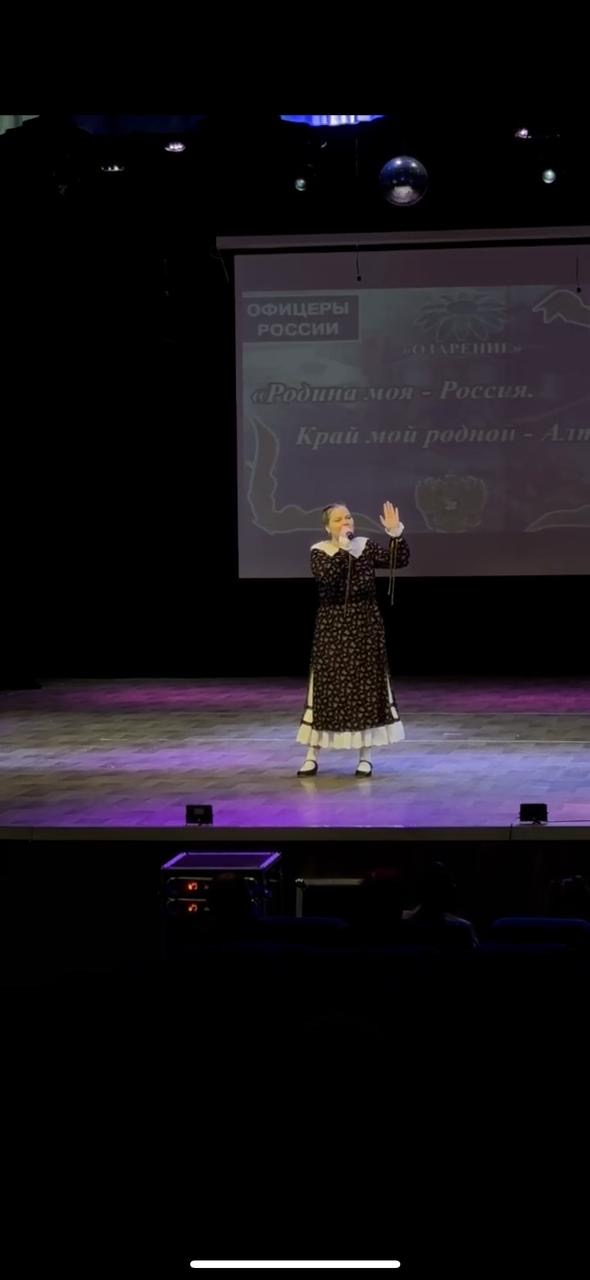 14 февраля в концертном зале ДК «Южный» г.Барнаула прошел Краевой конкурс-фестиваль «Родина моя – Россия. Край мой родной — Алтай». Со всех уголков Алтайского края съехались конкурсанты, чтобы показать свое мастерство в области вокала, хореографии и художественного чтения. С раннего утра на сцене и в зале царила особая атмосфера, наполненная духом силы, любви и самоотверженности, памяти и преданности основным идеалам долга и патриотизма.