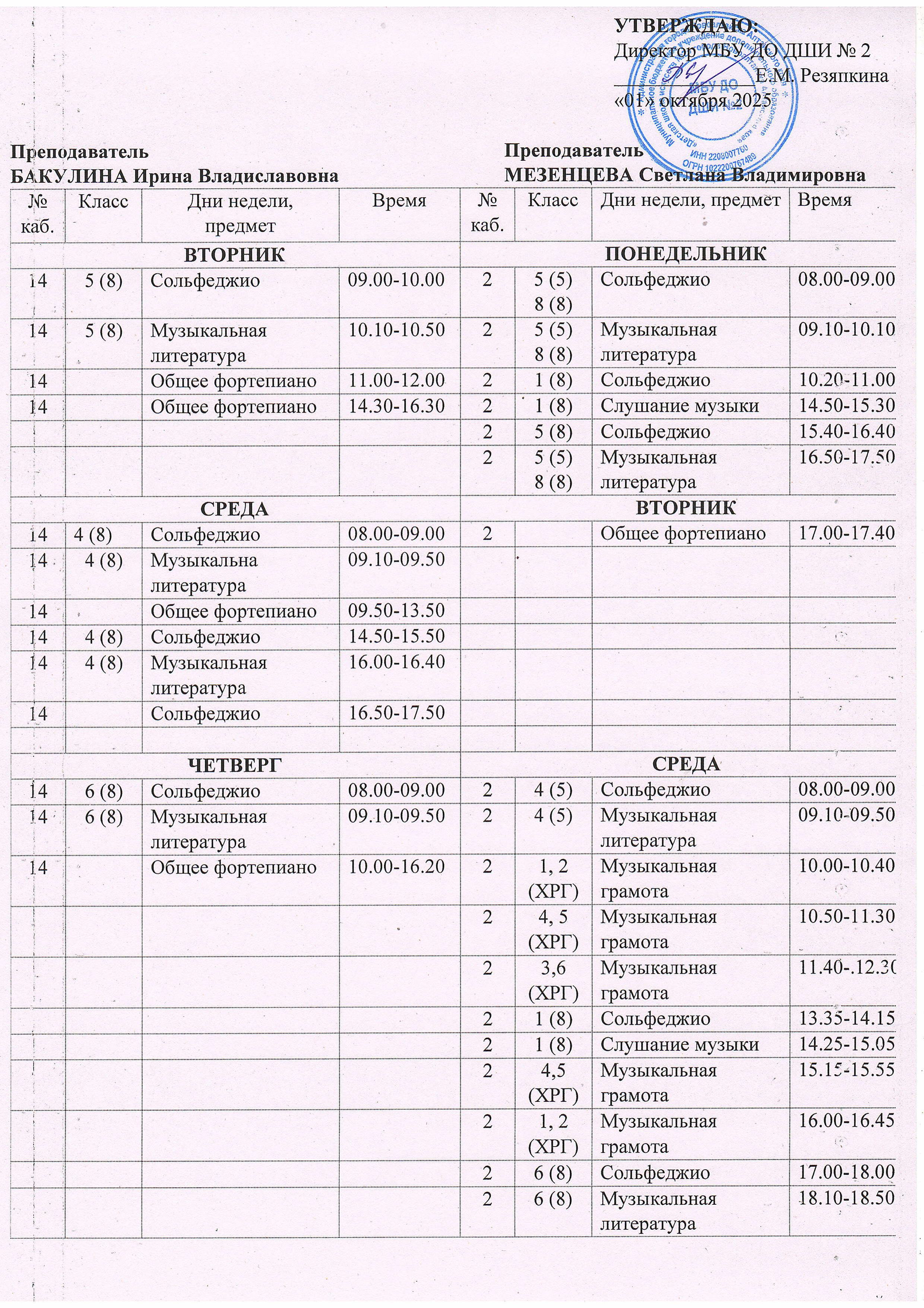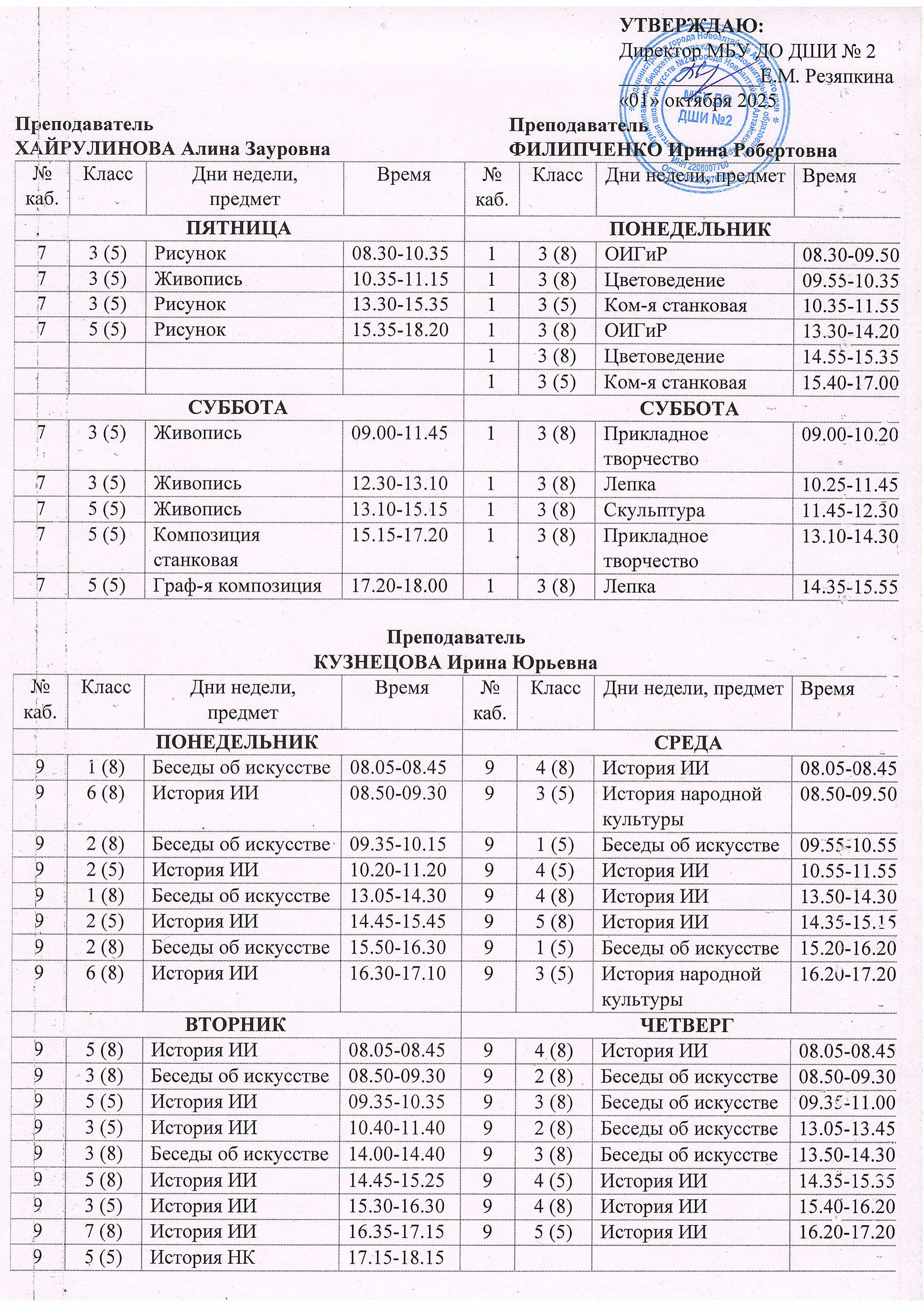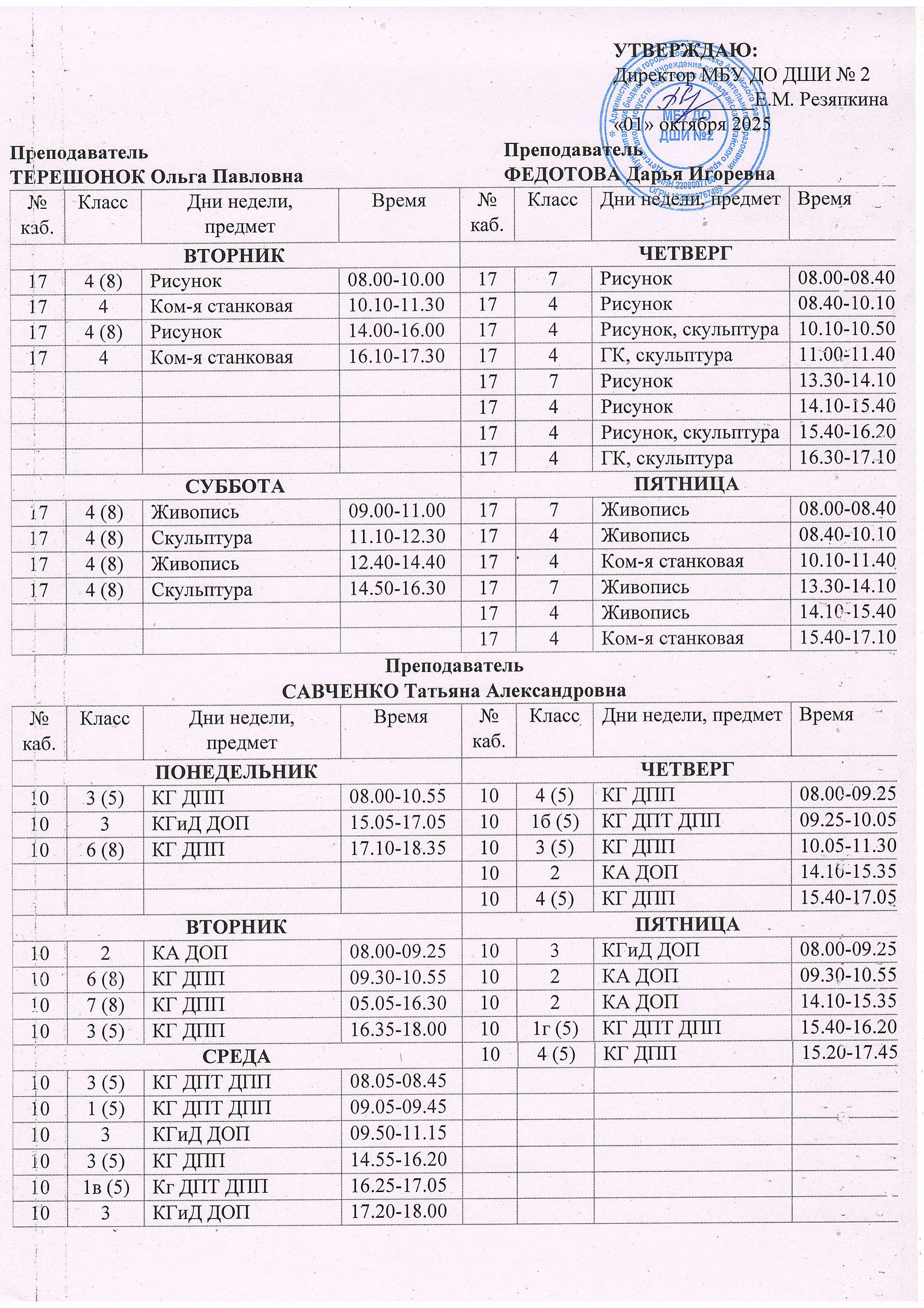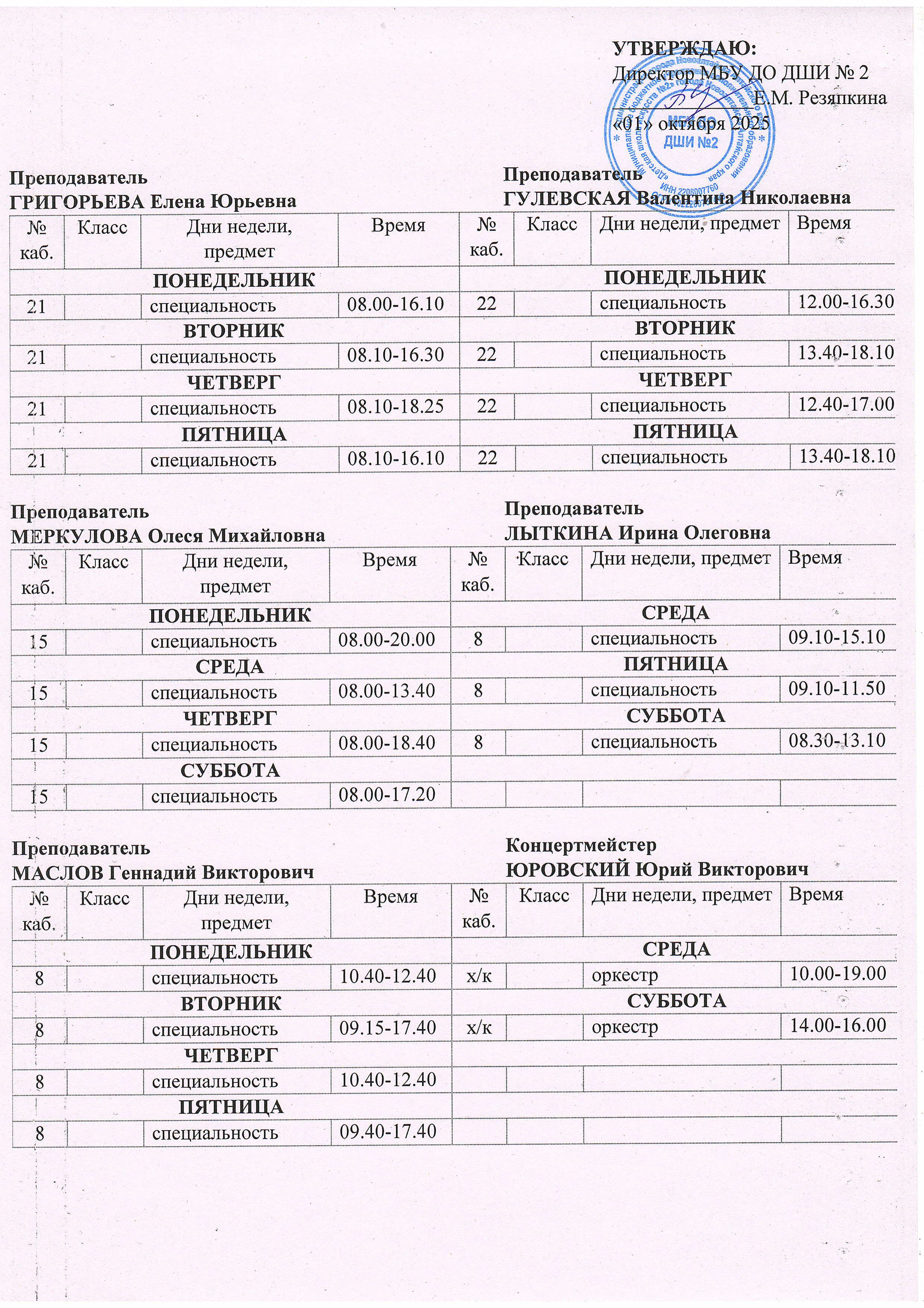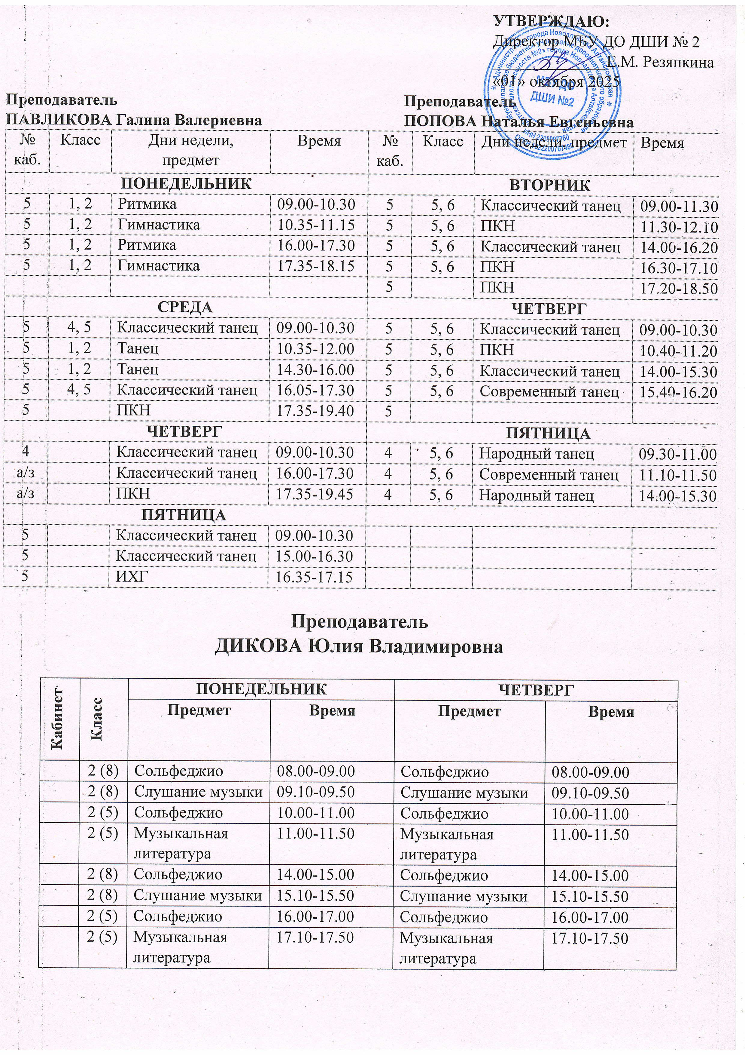 Расписание уроков по преподавателя на 2025-2026 учебный год