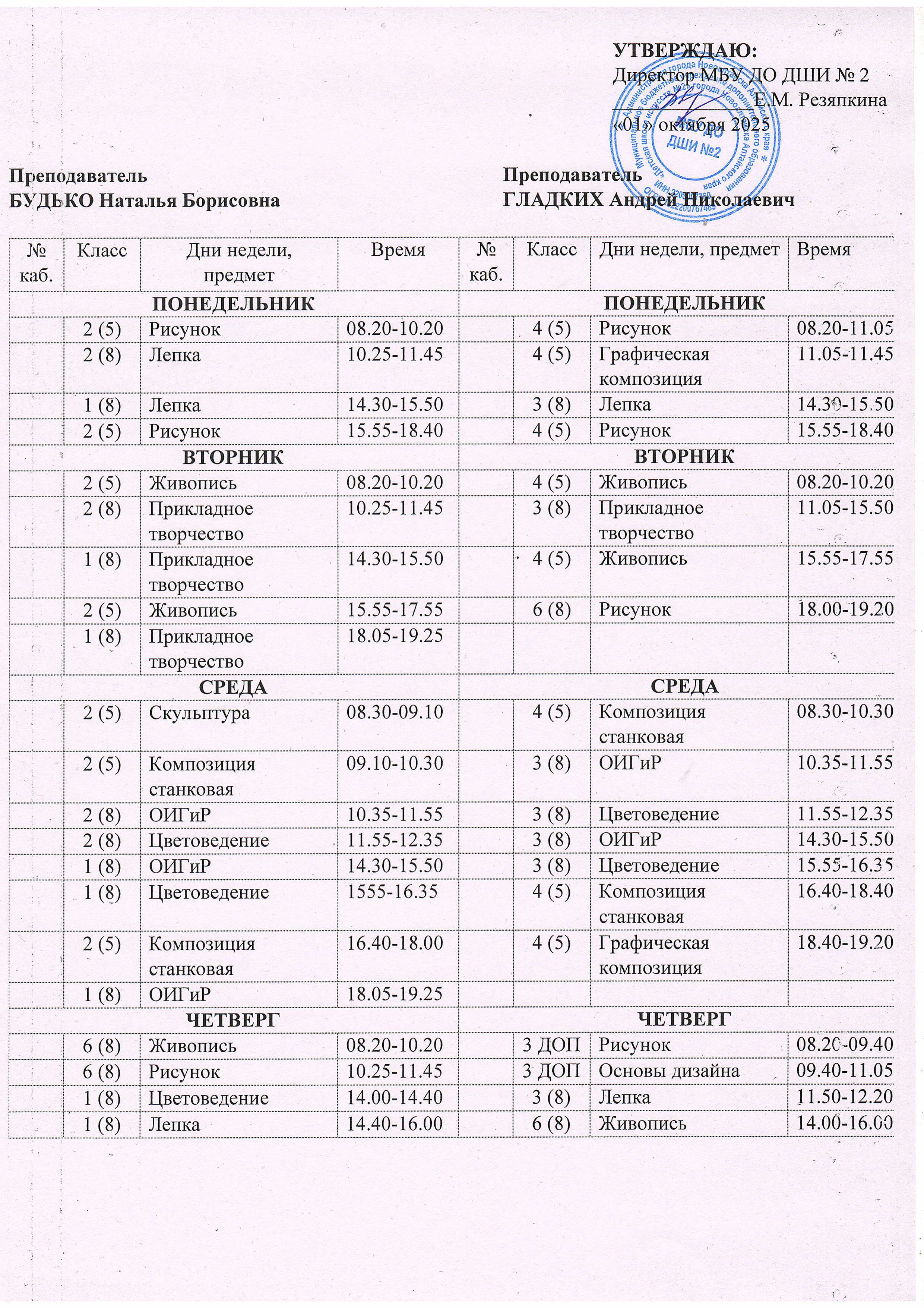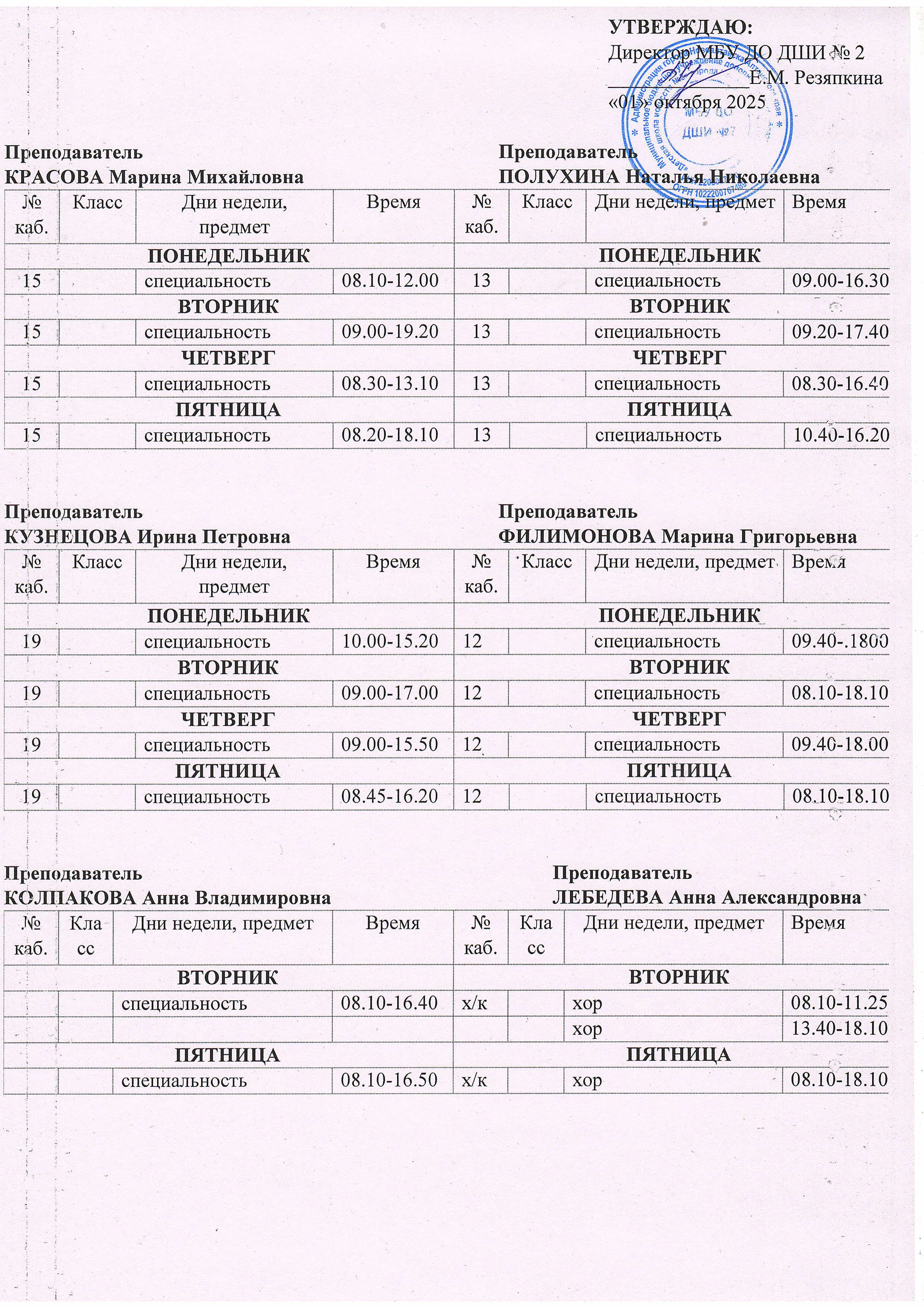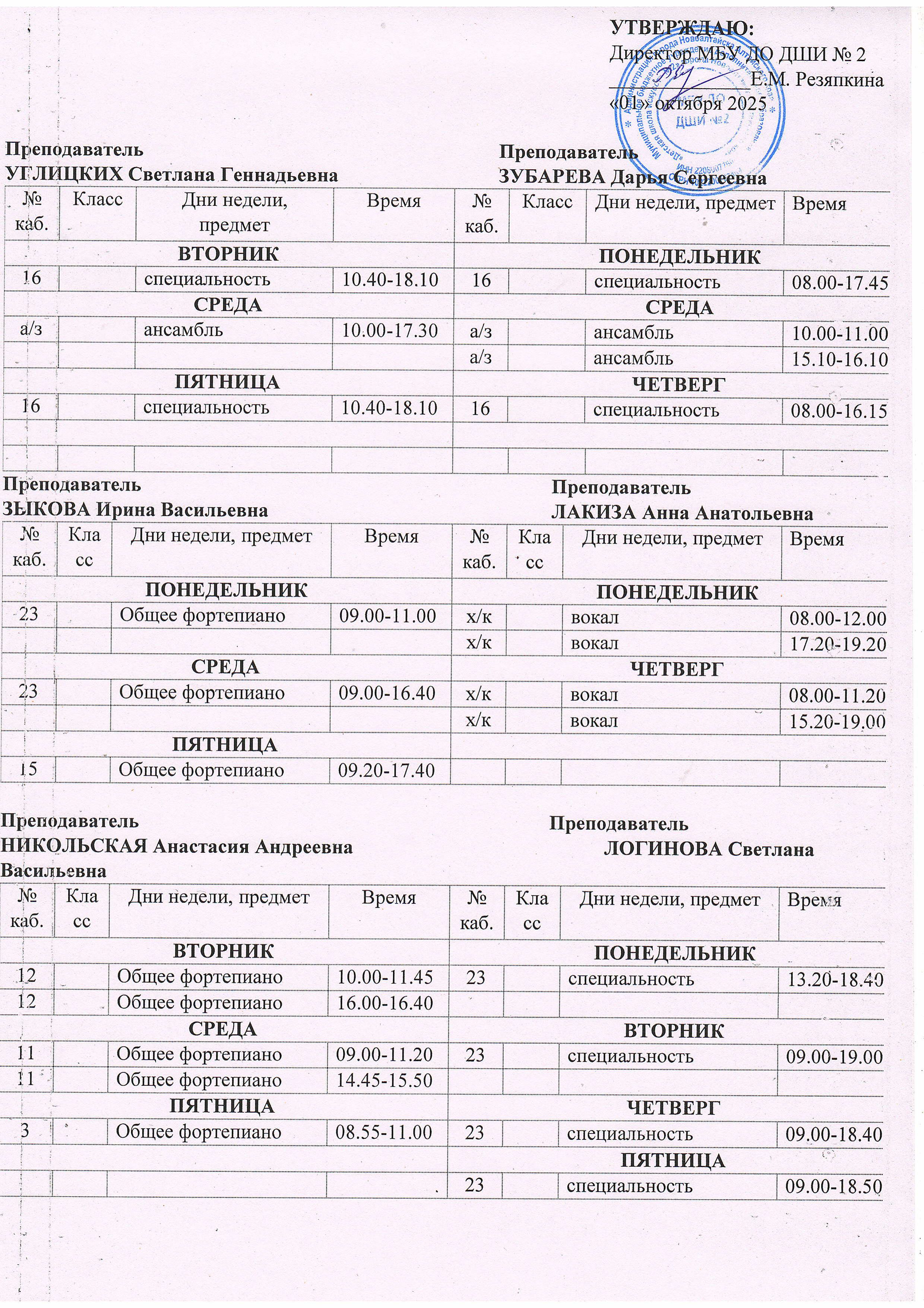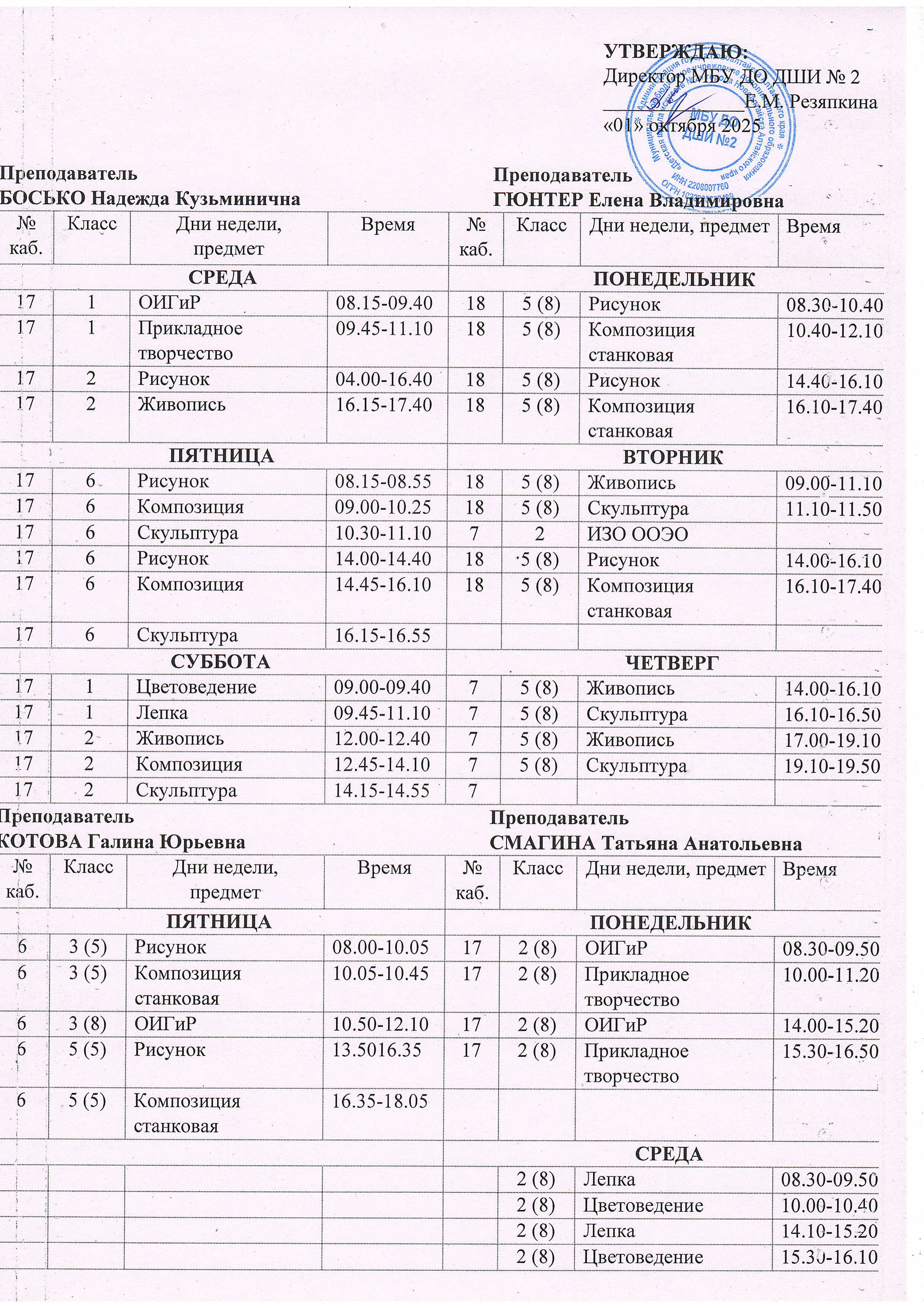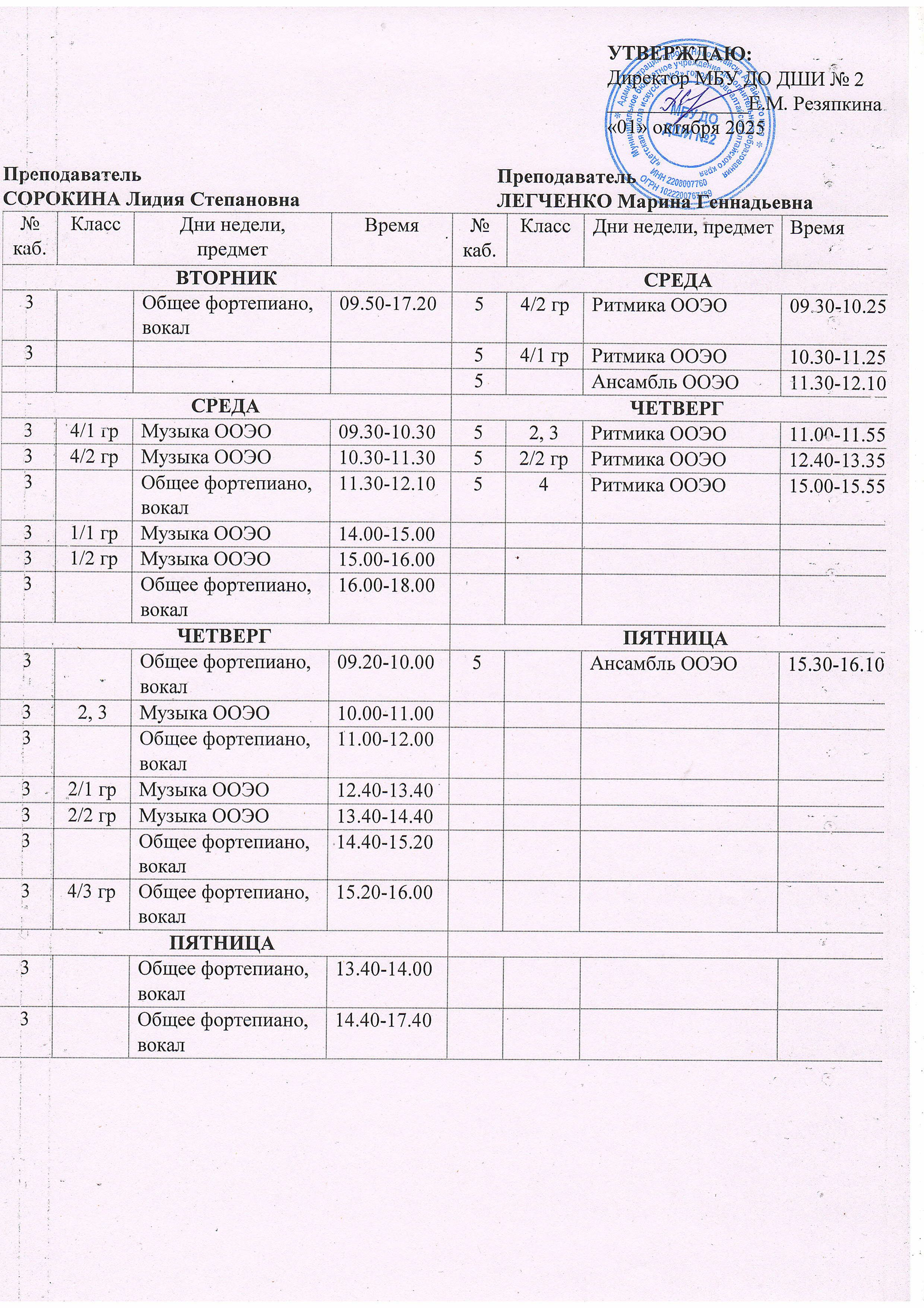 Расписание уроков по преподавателя на 2025-2026 учебный год
