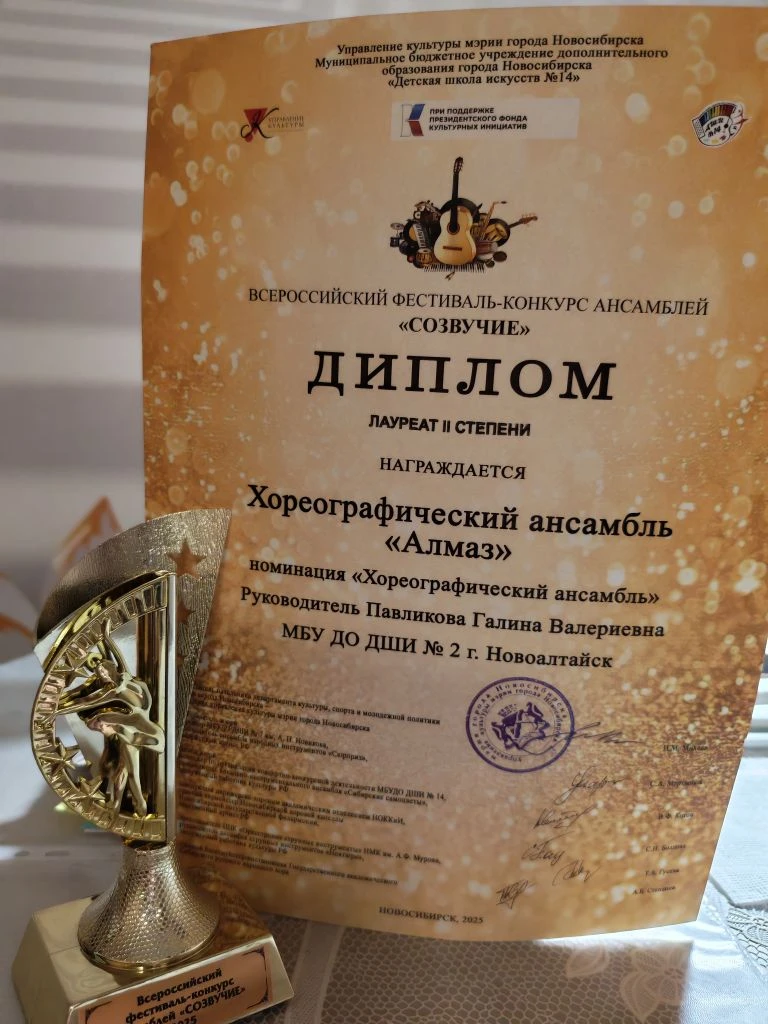 29 ноября в г. Новосибирске прошел Всероссийский фестиваль-конкурс ансамблей «Созвучие». В конкурсе от ДШИ № 2 принял участие хореографический коллектив «Алмаз».