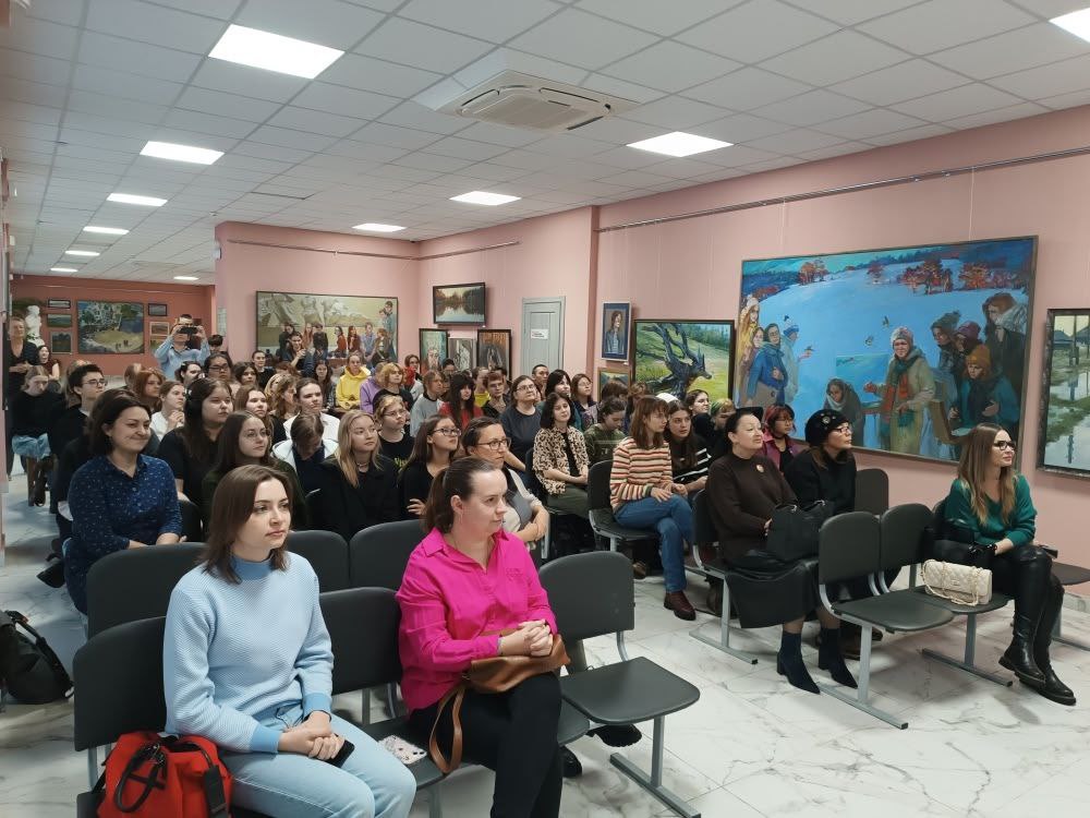 Творческая встреча прошла в тёплой, доверительной и откровенной атмосфере. Каждый педагог выступил с рассказом о своём творческом и профессиональном пути в преподавательской деятельности после выпуска из стен НГХУ. В основе всех выступлений прослеживалась общая мысль: профессия художник педагог - это прекрасное призвание, определившее их жизненный путь и породившее глубокую любовь к своему делу. Это уникальная профессия, которая позволяет творить, любить и наполнять жизнь глубоким смыслом, новыми возможностями и яркими идеями! После интересных рассказов педагогов Андрей Николаевич Гладких подарил зрителям музыкальный сюрприз, исполнив две песни.