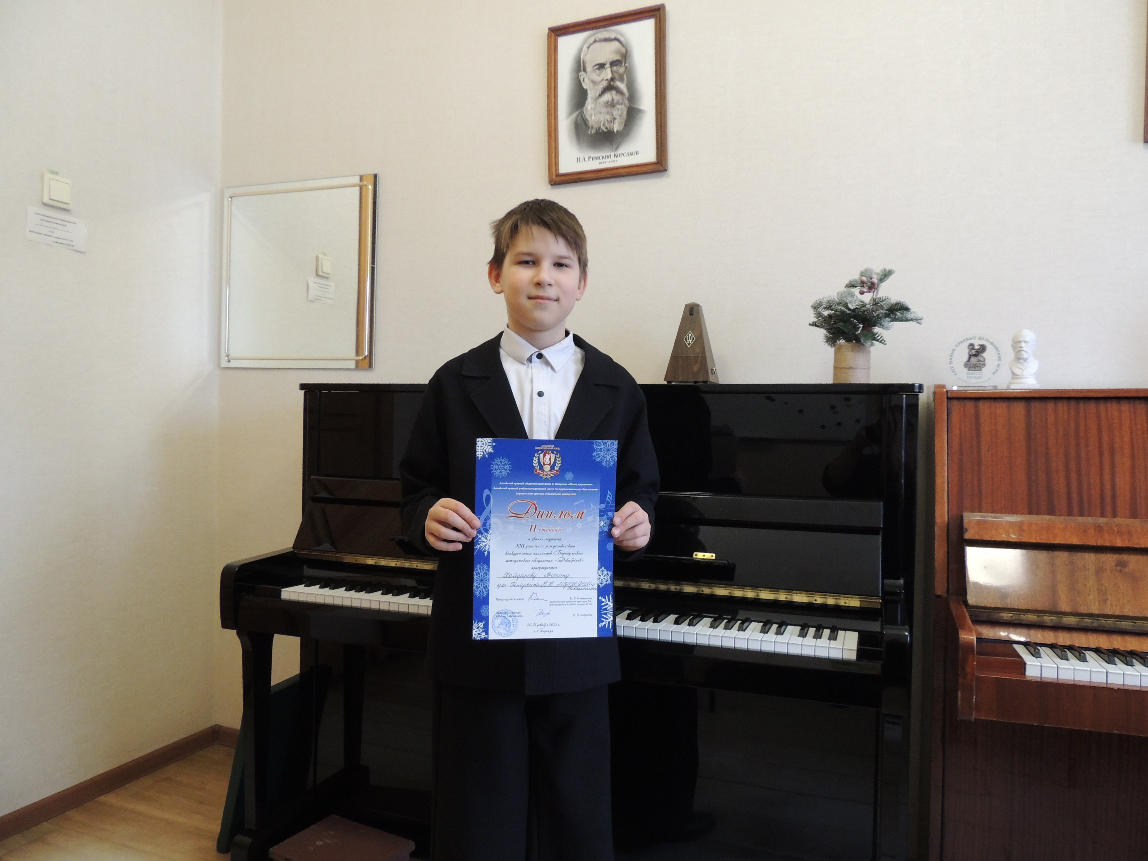 20 декабря в г. Барнауле на открытом зональном конкурсе «Декабренок» учащийся 5 класса Хайдаров Антон (пр. Полухина Н.Н.) стал Лауреатом 2 степени. Это большая победа ученика и преподавателя. В конкурсе принимали участие учащиеся ДШИ со всех городов Алтайского края. Конкурс трудный и престижный. В жюри ведущие преподаватели АлтГМК.