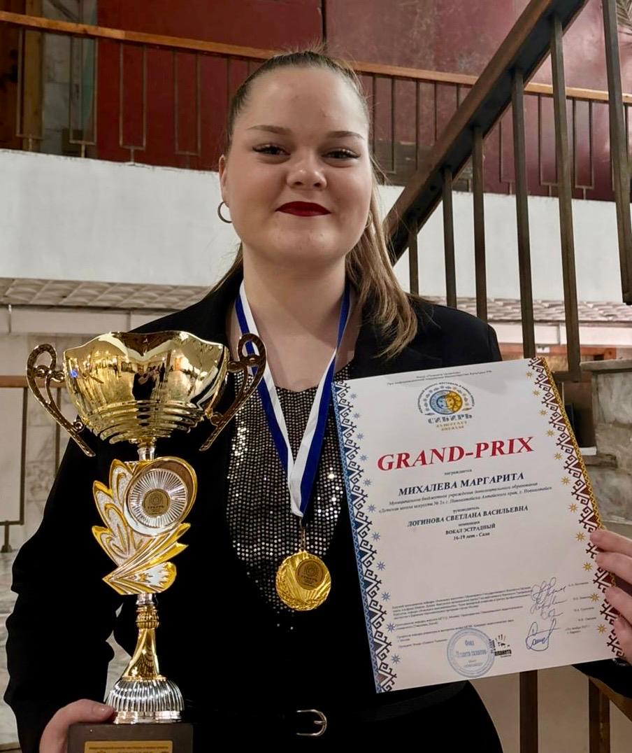 Результаты выступлений учащихся класса «Вокала» порадовали и даже дали повод для гордости, так как очередной Кубок Победителя – ГРАН-ПРИ достался учащейся Михалевой Маргарите (класс пр. Логиновой С.В.). Это большое признание мастерства и мотивация не останавливаться на достигнутом! Копилка Побед и достижений ДШИ № 2 пополнилась Кубком Победителя и многочисленными дипломами! Поздравляем!
