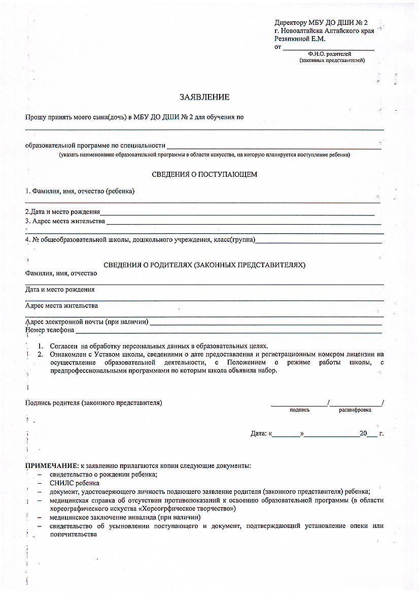 Правила приема и порядок отбора детей на обучение по ДППП в области искусств в МБУ ДО ДШИ № 2