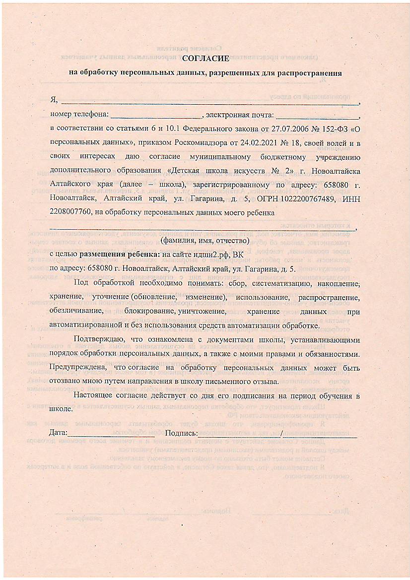 Устав муниципального бюджетного учреждения дополнительного образования "Детская школа искусств № 2" г.Новоалтайска Алтайского края